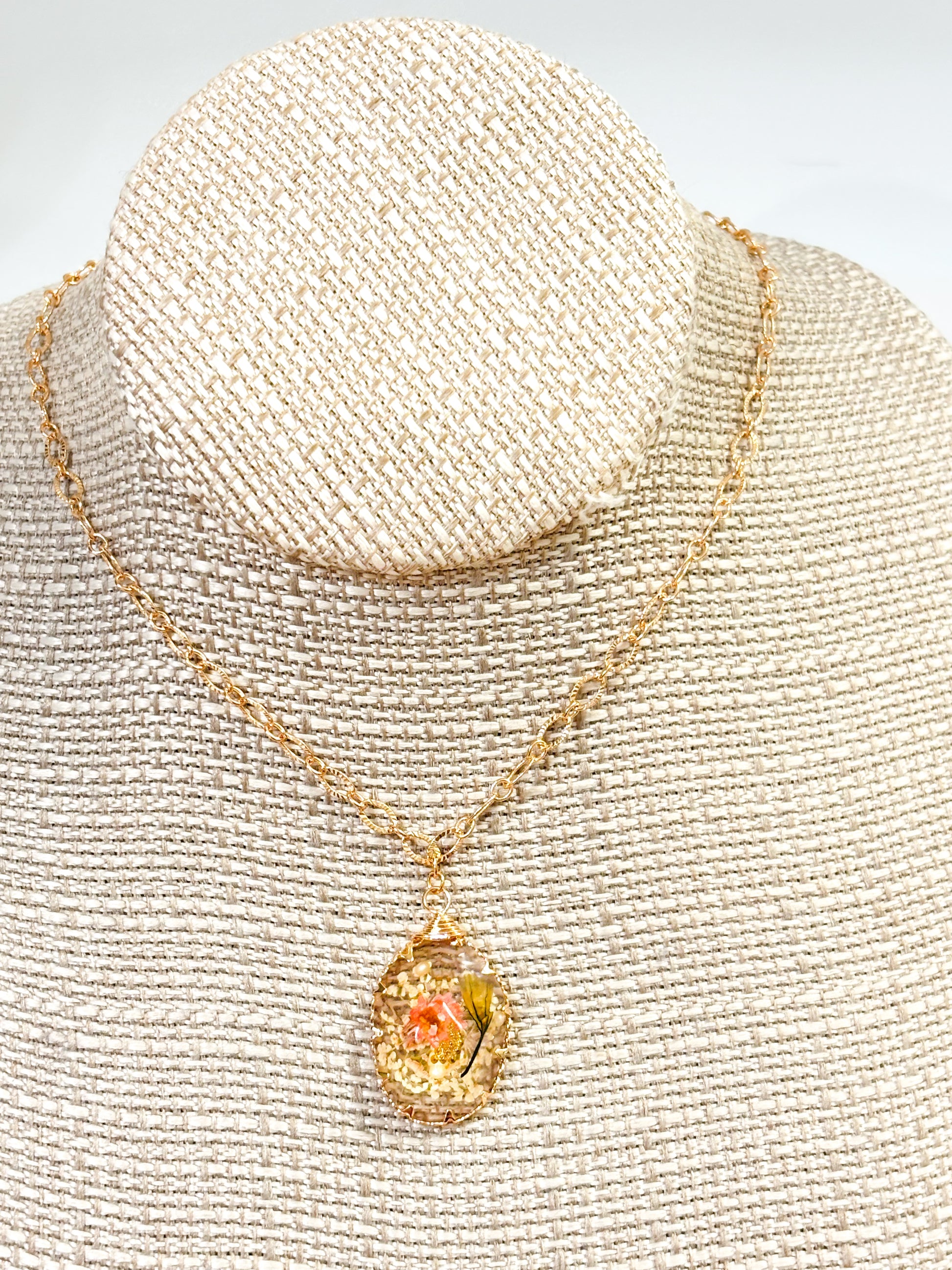 The Garden of His Grace Necklace is a beautiful reminder that we bloom where Christ has planted us. Suspended from a delicate gold chain, the teardrop pendant encases preserved flowers—capturing the beauty of God’s creation and the new life He brings. Each piece is uniquely crafted, symbolizing how His grace makes every daughter of the King one-of-a-kind. A perfect accessory for daily wear or gifting to someone who radiates faith and beauty.